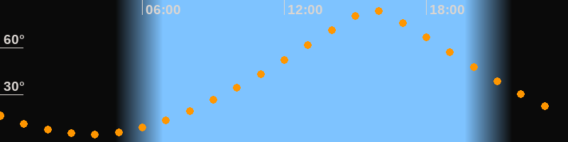 | Höchster Stand (Kulmination) | 15:44 Uhr (h = 83,7°) |