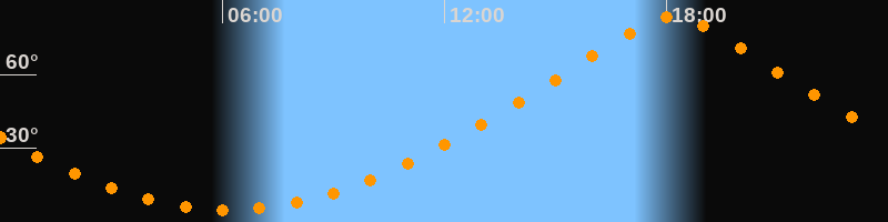 | Höchster Stand (Kulmination) | 18:09 Uhr (h = 83,7°) |