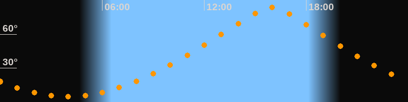| Höchster Stand (Kulmination) | 15:57 Uhr (h = 83,7°) |