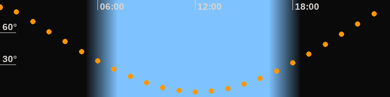 | Höchster Stand (Kulmination) | 00:05 Uhr (h = 83,7°) |
