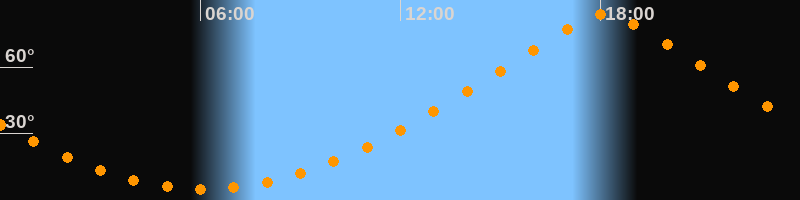 | Höchster Stand (Kulmination) | 18:07 Uhr (h = 83,7°) |