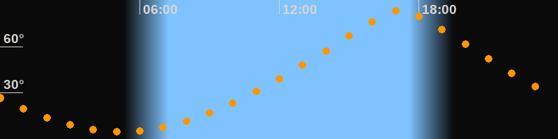 | Höchster Stand (Kulmination) | 17:12 Uhr (h = 83,7°) |
