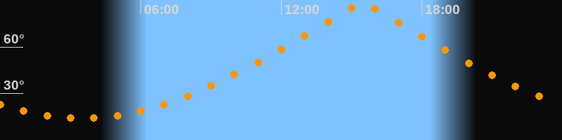 | Höchster Stand (Kulmination) | 15:28 Uhr (h = 87,4°) |