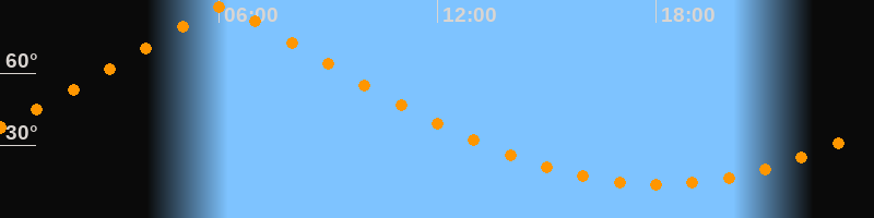 | Höchster Stand (Kulmination) | 06:07 Uhr (h = 87,4°) |