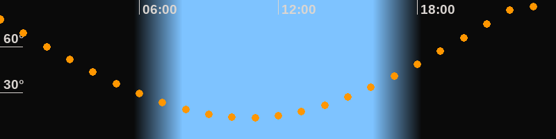| Höchster Stand (Kulmination) | 22:38 Uhr (h = 87,4°) |