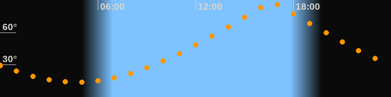 | Höchster Stand (Kulmination) | 16:40 Uhr (h = 87,4°) |