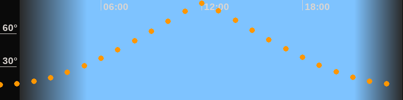 | Höchster Stand (Kulmination) | 12:02 Uhr (h = 87,4°) |