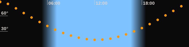 | Höchster Stand (Kulmination) | 00:13 Uhr (h = 87,4°) |