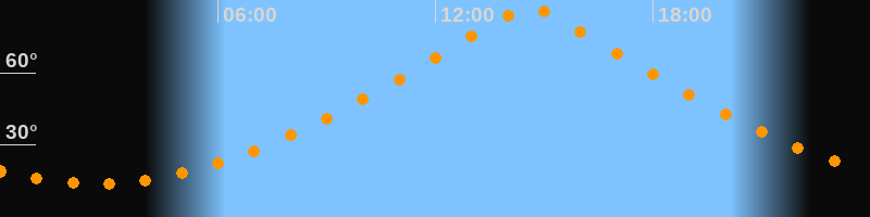 | Höchster Stand (Kulmination) | 14:36 Uhr (h = 87,4°) |