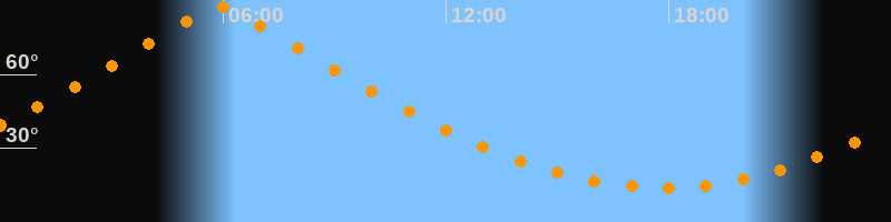 | Höchster Stand (Kulmination) | 05:53 Uhr (h = 87,4°) |