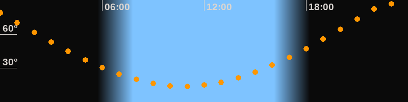 | Höchster Stand (Kulmination) | 22:48 Uhr (h = 87,4°) |
