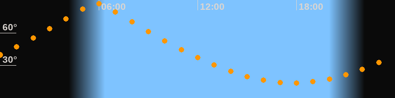 | Höchster Stand (Kulmination) | 05:50 Uhr (h = 87,4°) |