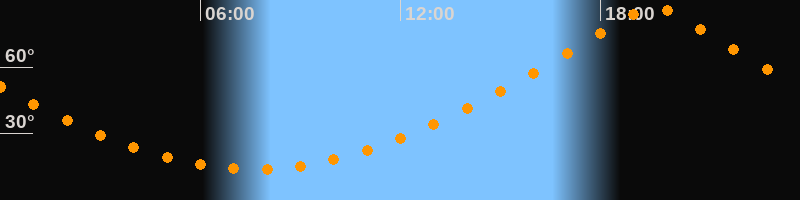 | Höchster Stand (Kulmination) | 19:36 Uhr (h = 87,4°) |