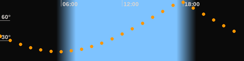 | Höchster Stand (Kulmination) | 17:46 Uhr (h = 87,4°) |