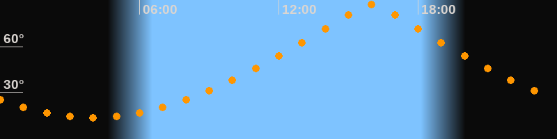 | Höchster Stand (Kulmination) | 16:00 Uhr (h = 87,4°) |