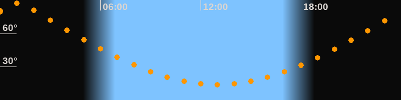 | Höchster Stand (Kulmination) | 01:03 Uhr (h = 87,4°) |