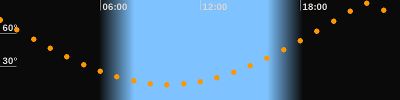 | Höchster Stand (Kulmination) | 22:02 Uhr (h = 87,4°) |