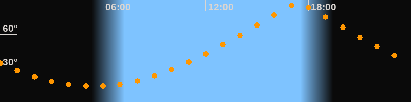 | Höchster Stand (Kulmination) | 17:23 Uhr (h = 87,4°) |