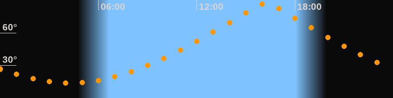 | Höchster Stand (Kulmination) | 16:13 Uhr (h = 87,4°) |