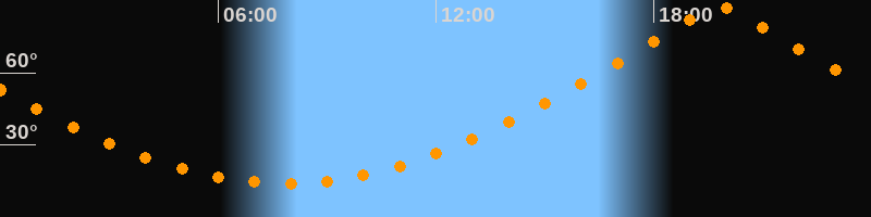 | Höchster Stand (Kulmination) | 19:49 Uhr (h = 87,4°) |
