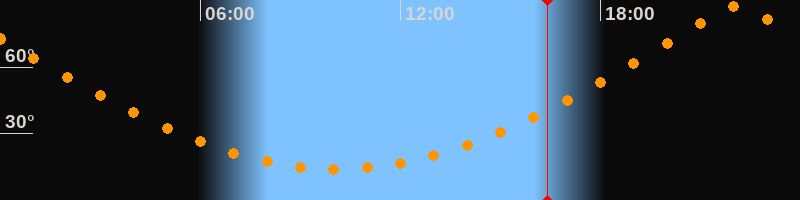 Höchster Stand (Kulmination)22:06 Uhr (h = 87,4°)