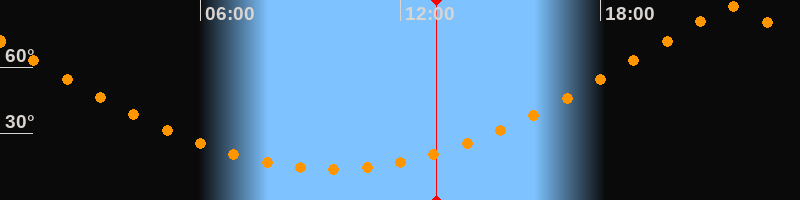 | Höchster Stand (Kulmination) | 21:58 Uhr (h = 87,4°) |