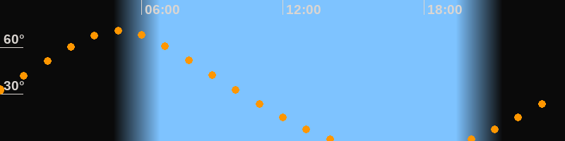 | Höchster Stand (Kulmination) | 05:01 Uhr (h = 70,6°) |