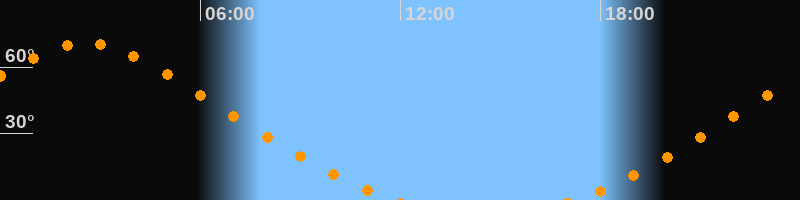 | Aufgang | 17:11 Uhr im Nordosten (αAz = 33,4°) |