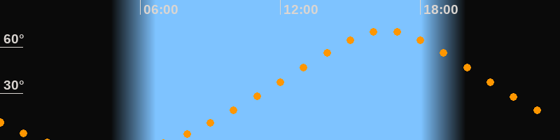 | Höchster Stand (Kulmination) | 16:29 Uhr (h = 70,6°) |