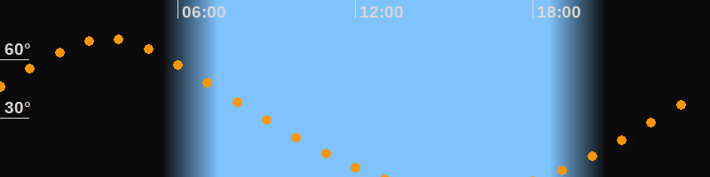 | Aufgang | 18:14 Uhr im Nordosten (αAz = 33,4°) |