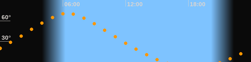 Höchster Stand (Kulmination)06:26 Uhr (h = 70,6°)
