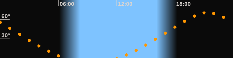 | Aufgang | 12:05 Uhr im Nordosten (αAz = 33,4°) |