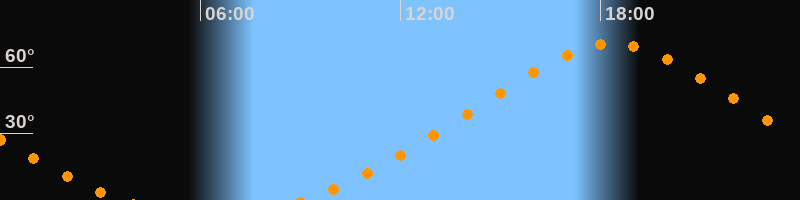 | Höchster Stand (Kulmination) | 18:21 Uhr (h = 70,6°) |