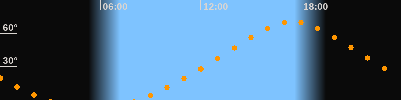 | Höchster Stand (Kulmination) | 17:30 Uhr (h = 70,6°) |
