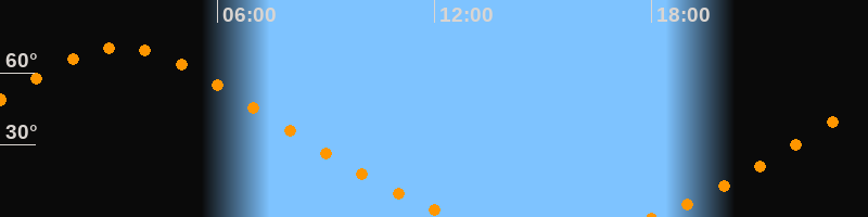 | Aufgang | 17:58 Uhr im Nordosten (αAz = 33,4°) |