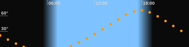 | Höchster Stand (Kulmination) | 17:49 Uhr (h = 70,6°) |