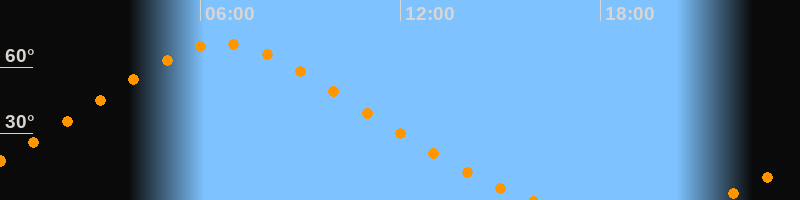 | Höchster Stand (Kulmination) | 06:42 Uhr (h = 70,6°) |