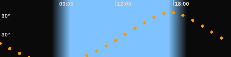 | Höchster Stand (Kulmination) | 17:43 Uhr (h = 70,6°) |