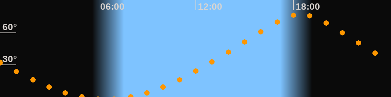 | Höchster Stand (Kulmination) | 18:27 Uhr (h = 76,7°) |