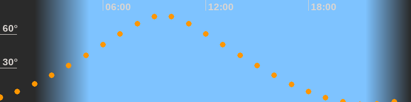 | Höchster Stand (Kulmination) | 09:29 Uhr (h = 76,7°) |