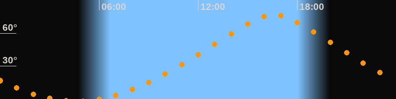 | Höchster Stand (Kulmination) | 16:34 Uhr (h = 76,7°) |