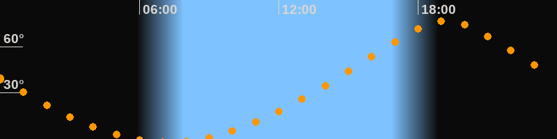 | Höchster Stand (Kulmination) | 19:13 Uhr (h = 76,7°) |