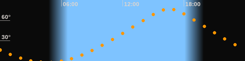 | Höchster Stand (Kulmination) | 16:32 Uhr (h = 76,7°) |