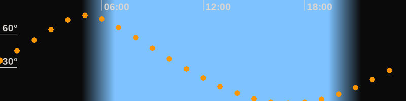 | Höchster Stand (Kulmination) | 05:05 Uhr (h = 76,7°) |
