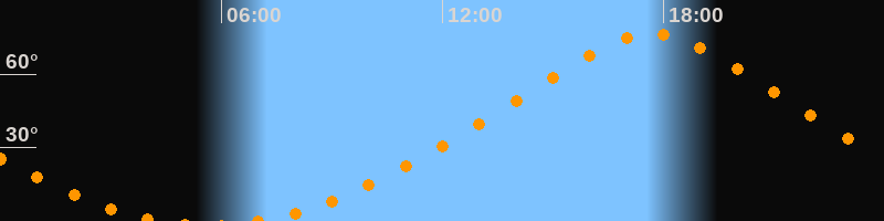 | Höchster Stand (Kulmination) | 17:40 Uhr (h = 76,7°) |