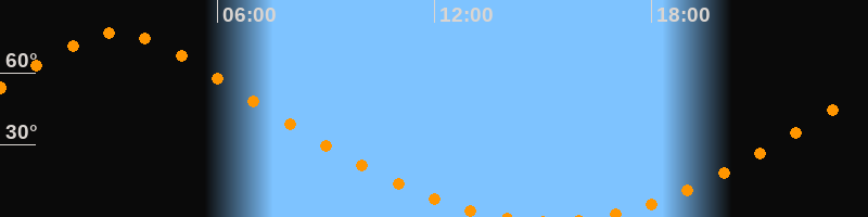 | Aufgang | 16:20 Uhr im Norden (αAz = 13,6°) |