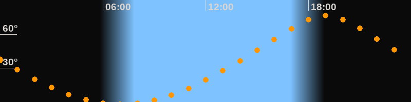 | Höchster Stand (Kulmination) | 19:01 Uhr (h = 76,7°) |