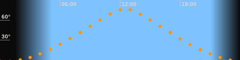 | Höchster Stand (Kulmination) | 12:29 Uhr (h = 76,7°) |