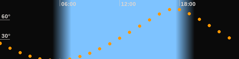 | Höchster Stand (Kulmination) | 17:31 Uhr (h = 76,7°) |