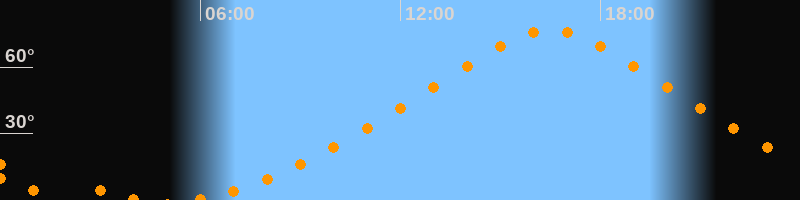 Höchster Stand (Kulmination)16:29 Uhr (h = 76,7°)